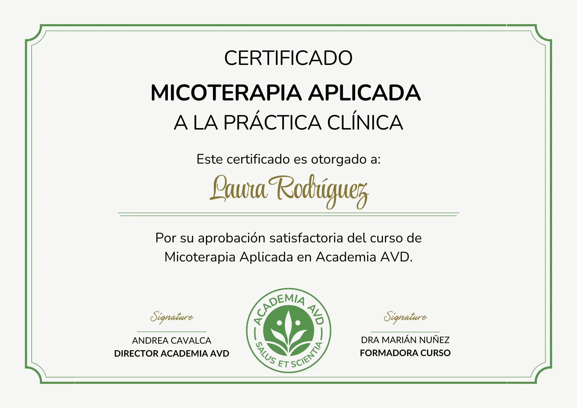 Al acabar el curso el alumno recibirá un Certificado que acredita que lo ha superado satisfactoriamente, y que adquiere competencias para aplicar la Micoterapia en su práctica clínica
